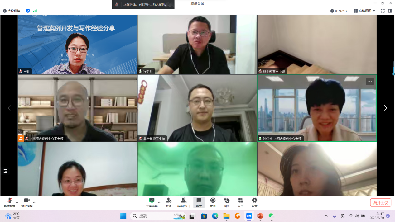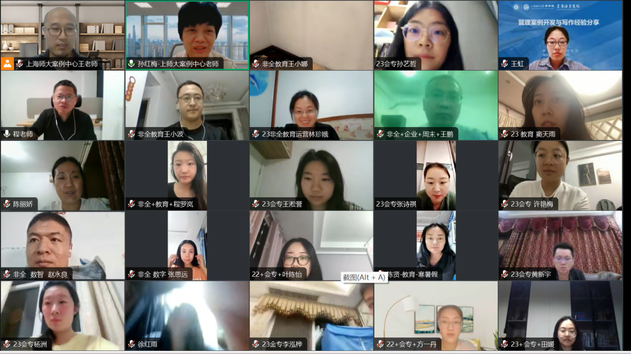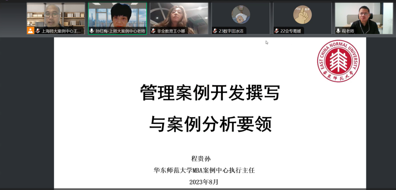 范大学MBA案例中心执行主任程贵孙副教授在线指导。同时,参会的还有上海师范大学商学院案例中心主任孙红梅教授、商学院案例中心主任助理王强老师。