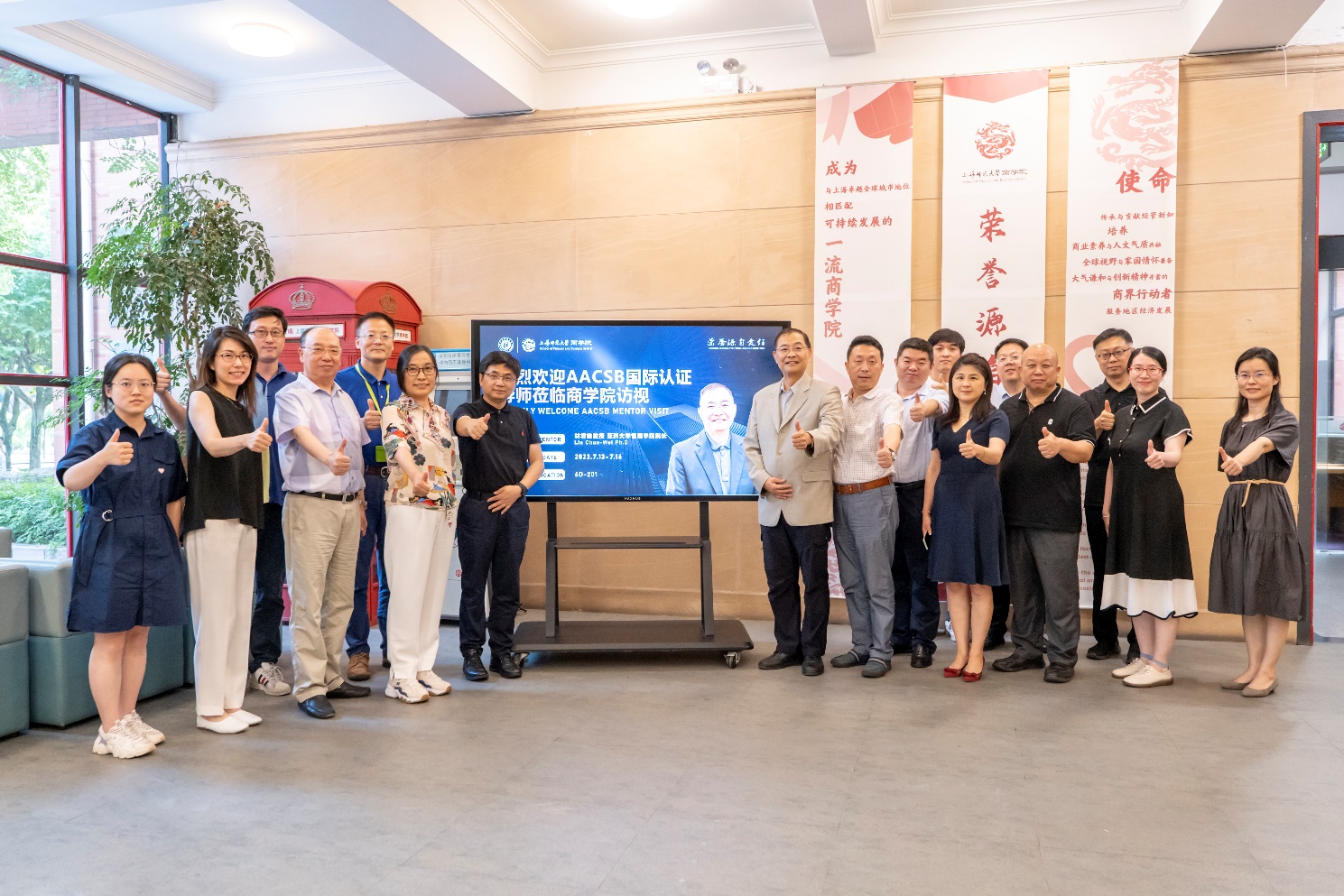 以及商学院参会教职工与AACSB导师林君维合影)