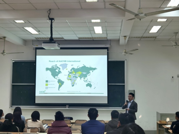 2021年11月10日下午,国际高等商学院协会(The Association to Advance Collegiate Schools of Business,简称“AACSB”)东亚区负责人徐国栋来我院向全院教职员工开展认证培训。商学院主持工作副院长刘江会主持会议。
