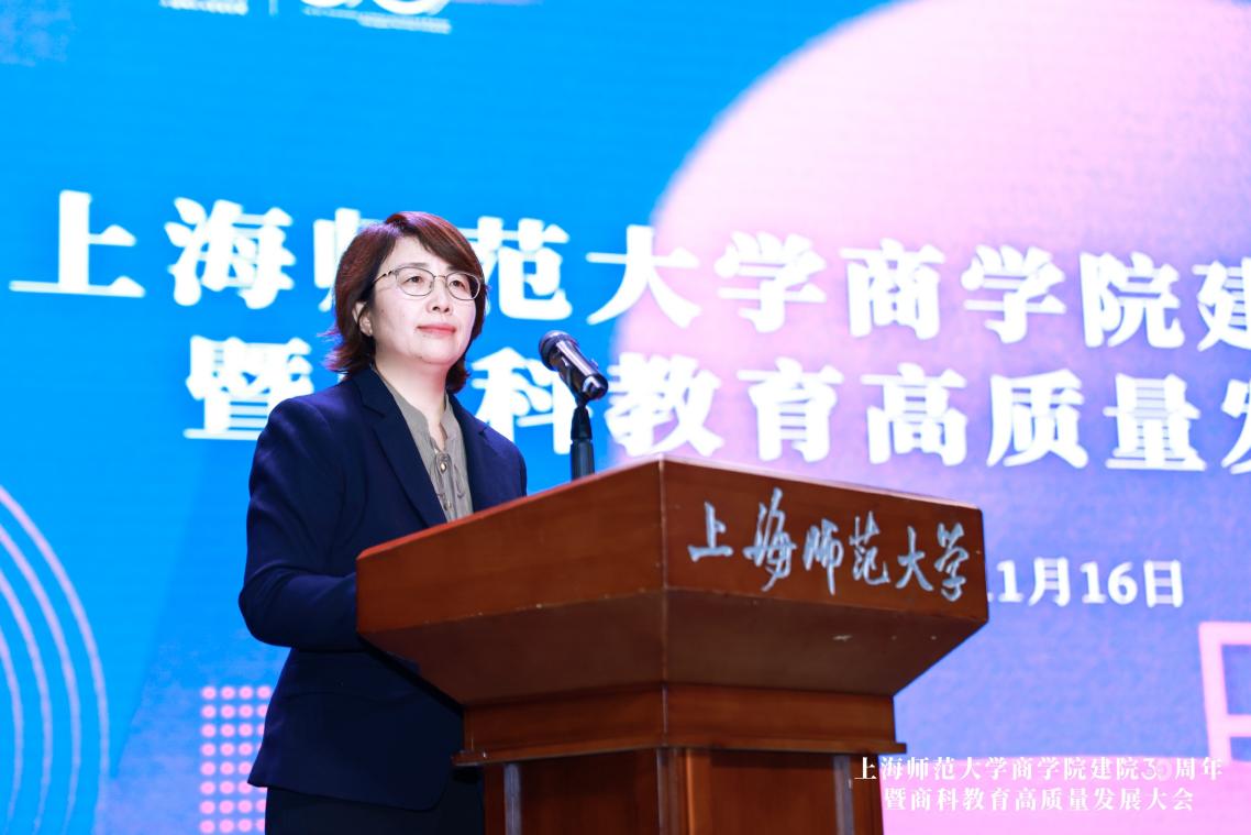 三十年春华秋实,三十年弦歌不辍。11月16日上午,上海师范大学商学院建院三十周年暨商科教育高质量发展大会在徐汇校区东部音乐厅举行。校长袁雯,上海经济学会会长周振华,亚洲大学教务长林君维,中共上海市委党校副校长、上海行政学院副院长戴冰,上海市政协经济和金融委员会参事生键红,校党委副书记、副校长朱惠军,新华社上海分社副总编辑仇逸,以及来自外省市高校和上海兄弟高校相关学院的领导与嘉宾,法国克莱蒙奥弗涅大学、美国犹他谷州立大学的师生代表,企业代表,学院老领导、老同事,现任领导,退休老同志代表、校友代表和学院师生代表等出席大会。大会由商学院党委书记张春丽主持。