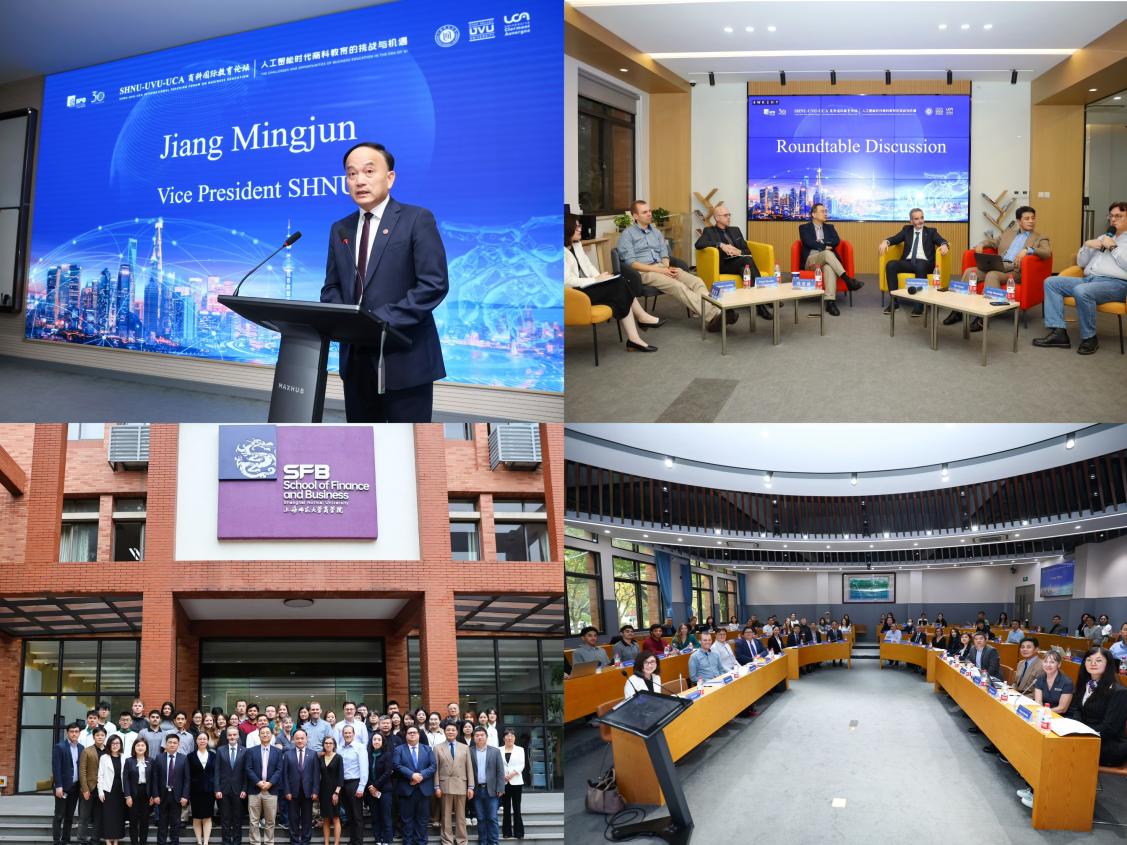 11月15日上午,SHNU-UVU-UCA 商科国际教育论坛在商学院举行。本次论坛由上海师范大学商学院、美国犹他谷州立大学和法国克莱蒙奥弗涅大学联合主办。论坛由商学院副教授贾思雪主持。副校长蒋明军参加会议并致辞,蒋校长指出,人工智能的发展对传统商科教育模式提出了新的挑战,也为学校培养面向未来的商业领袖带来了前所未有的机遇。我们应该更新教育内容和方法,推动教学队伍和教学任务的创新。为全球商业和社会的发展贡献新的智慧和力量。三校相关专家学者围绕“人工智能时代商科教育的挑战与机遇”的主题,聚焦人工智能对商业教育的变革性影响,以及如何培养具备人工智能素养和创新能力的复合型人才进行研讨。