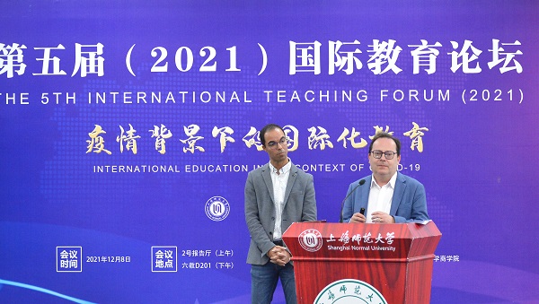 2021年12月8日,上海师范大学商学院、美国犹他谷大学与法国克莱蒙奥弗涅大学联合主办的第五届国际教育论坛在我校拉开序幕,本届论坛主题是“疫情背景下的国际化教育”。因为疫情,这是三所大学第一次以线上线下结合的方式、分别在三个城市(中国上海、美国犹他州奥瑞姆市、法国克莱蒙费朗市)举办论坛。