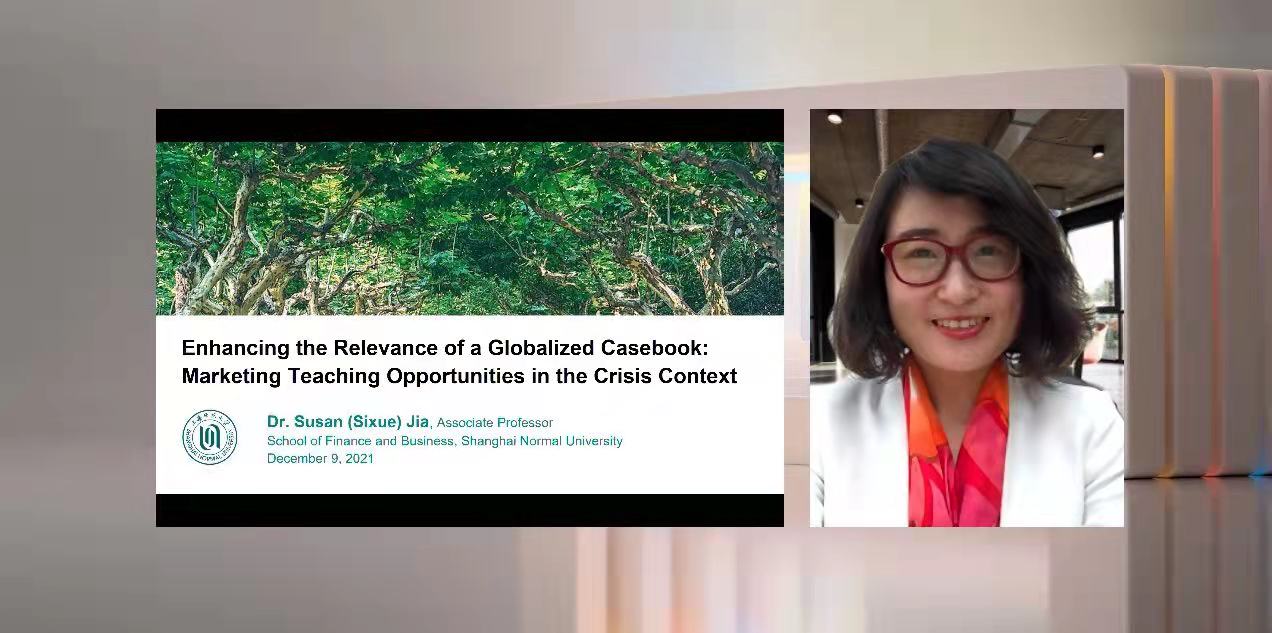 2021年12月9日,第五届国际教育论坛在法国克莱蒙奥弗涅大学当地同步举行,我院主持工作副院长刘江会教授代表上海师范大学商学院致辞,我院商业数据系贾思雪副教授应邀出席并代表上海师范大学商学院发表了题为《Enhancing the Relevance of a Globalized Casebook: Marketing Teaching Opportunities in the Crisis Context》的演讲,并获得一致好评。
