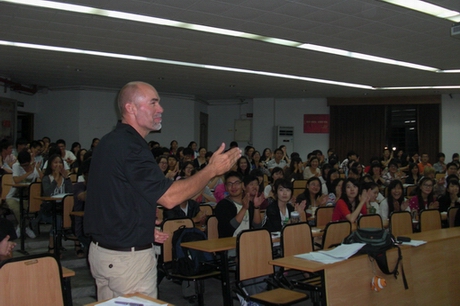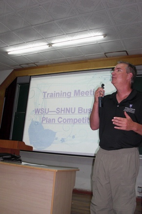 上海师范大学商学院与美国韦伯州立大学商学院共同策划举办的商业计划大赛目前进入培训阶段。9月24日,美国韦伯州立大学商学院副院长Cliff和商业计划大赛主策划人Tony在徐汇和奉贤二个校区向参赛学生做了培训。培训内容主要是大赛流程和规则。学生们听讲认真,会后不少参赛者上前提问,两位培训师们亦耐心解答。