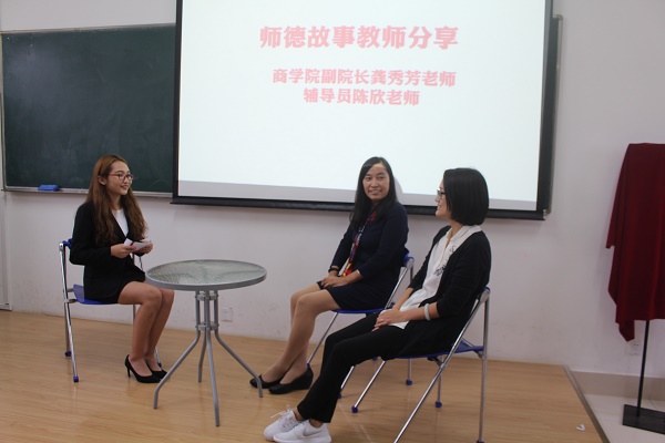 孟子有言:“爱人者,人恒爱之;敬人者,人恒敬之。”立德树人,不仅是高校立身之本,更是教师立业之根。十年树木,百年树人,教育是千秋的功业,需要代代有德之师不辞辛苦、舍身投入,更需要师生协力薪火相传、血脉相承。为贯彻师德师风教育,加强青年学子思想道德建设,10月11日,商学院师德故事分享会在奉贤校区5B304举行,通过分享师生互动中的点滴细节,彰显商学院教师“高风峻节、率先垂范”的师德师风,倡导学生弘扬“尊师重道”的中华传统美德;商学院党委书记胡志民、副院长龚秀芳、各年级辅导员以及优秀征文作者、学生代表共同见证了这场意义深远的师德杏坛。
