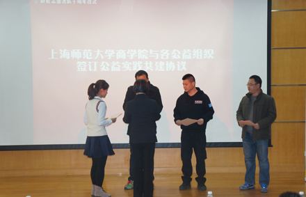 纪念仪式上,来宾与志愿者们通过视频,一同回顾了彩虹过去十年青春奋斗的历程,凝练总结了商学院志愿者服务的工作思路和发展模式,共同展望了彩虹未来发展的新方向、新目标。校团委书记戴冰老师致辞,对彩虹志愿队十年来的辛勤付出与所取得的成绩表示肯定,同时也提出更高的要求,希望彩虹志愿者们能秉承优秀的服务传统,不断开拓创新,努力打造志愿公益新的品牌。最后,商学院党委副书记(主持工作)章敏老师与在场三家公益组织代表交换志愿者公益实践共建协议,标志着彩虹志愿公益发展道路上新的里程碑。