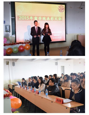 12月16日下午1时整,2015年度商学院团学工作表彰大会于4D200隆重举行。大会邀请到中国银行漕河泾支行行长傅晓琼女士、客户经理邓辉先生、商学院团委副书记黄寂然老师作为嘉宾出席本次大会。本届表彰大会旨在回顾并总结商学院2015年的各类团学活动,表彰在志愿者活动和“商务精英”挑战赛中涌现出来的优秀青年。