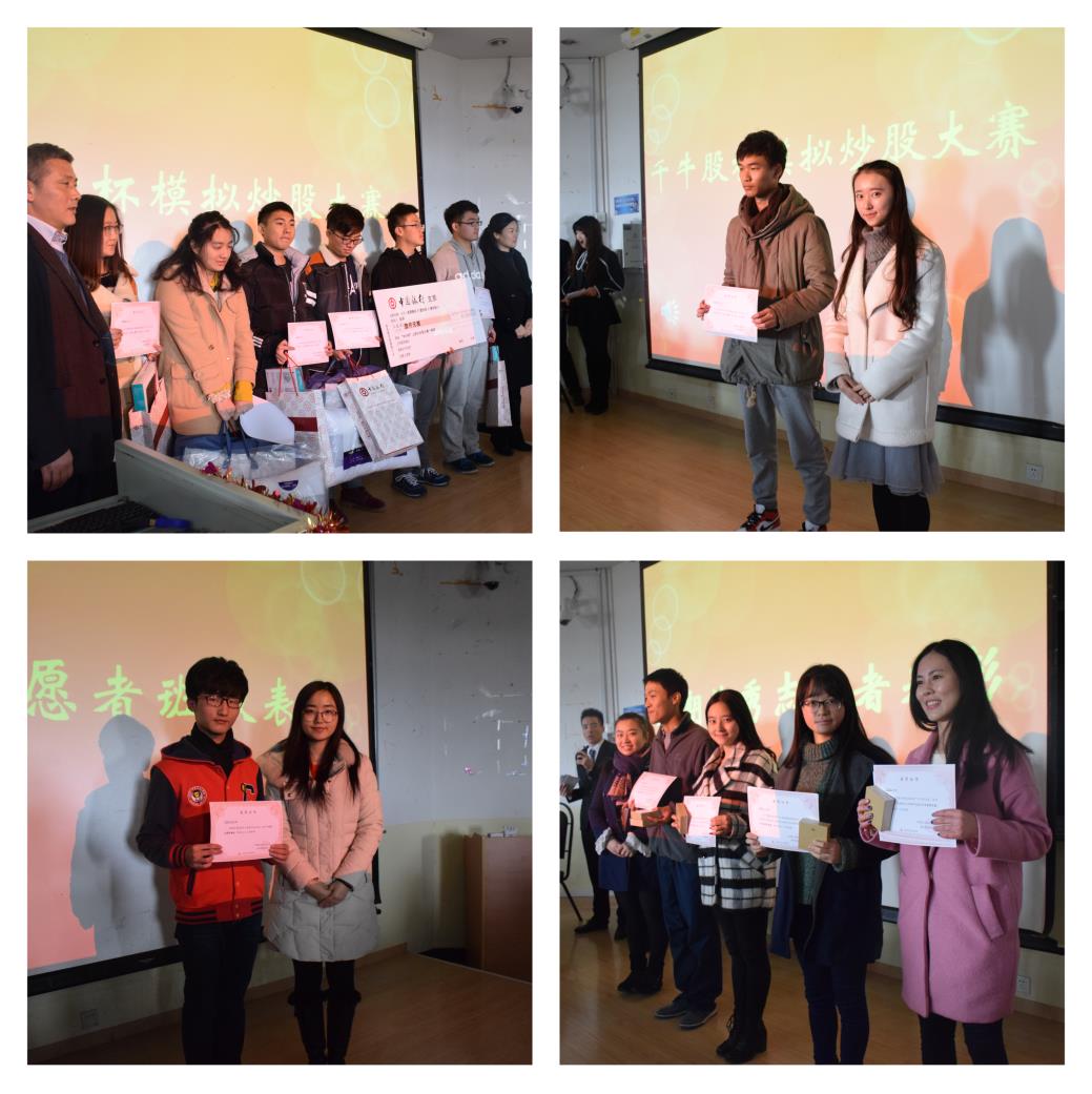 大会随后进入颁奖环节,本次颁奖环节共分为两个部分。首先由团委学生会优秀干部代表蔡润倩和边常及两位同学,分别为优秀志愿者个人、暑期优秀志愿者个人和进行表彰。志愿者表彰结束后,大会对在商学院第三届“商务精英”挑战赛中的获奖个人进行表彰,荣获“中行杯”模拟炒股大赛一等奖的15级工商管理大类专业澎湃同学和荣获“千牛股杯”模拟炒股大赛一等奖的14级信用管理专业的陶雨润同学以及多名优秀获奖个人上台接受了傅晓琼女士和邓辉先生两位嘉宾的颁奖。