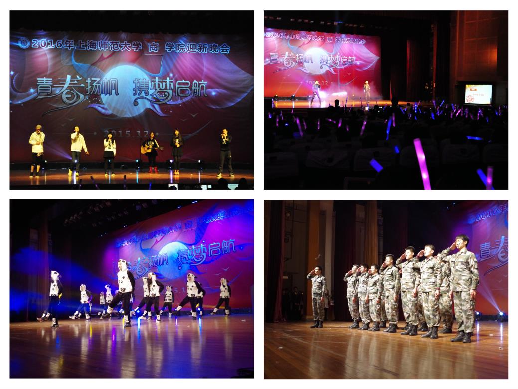2015年12月23日晚,2016年商学院“青春正当时,梦想今启航”迎新晚会于上师大奉贤大剧院隆重举行,莅临本次晚会的领导和嘉宾有院长茆训诚、党委书记章敏、副院长石雄、副书记刘凤,校学工部副部长张益、校团委副书记杨纯婷以及商学院专业老师代表和辅导员们。在这欢乐之夜,师生齐聚一堂,共赏多彩节目,迎接崭新一年。