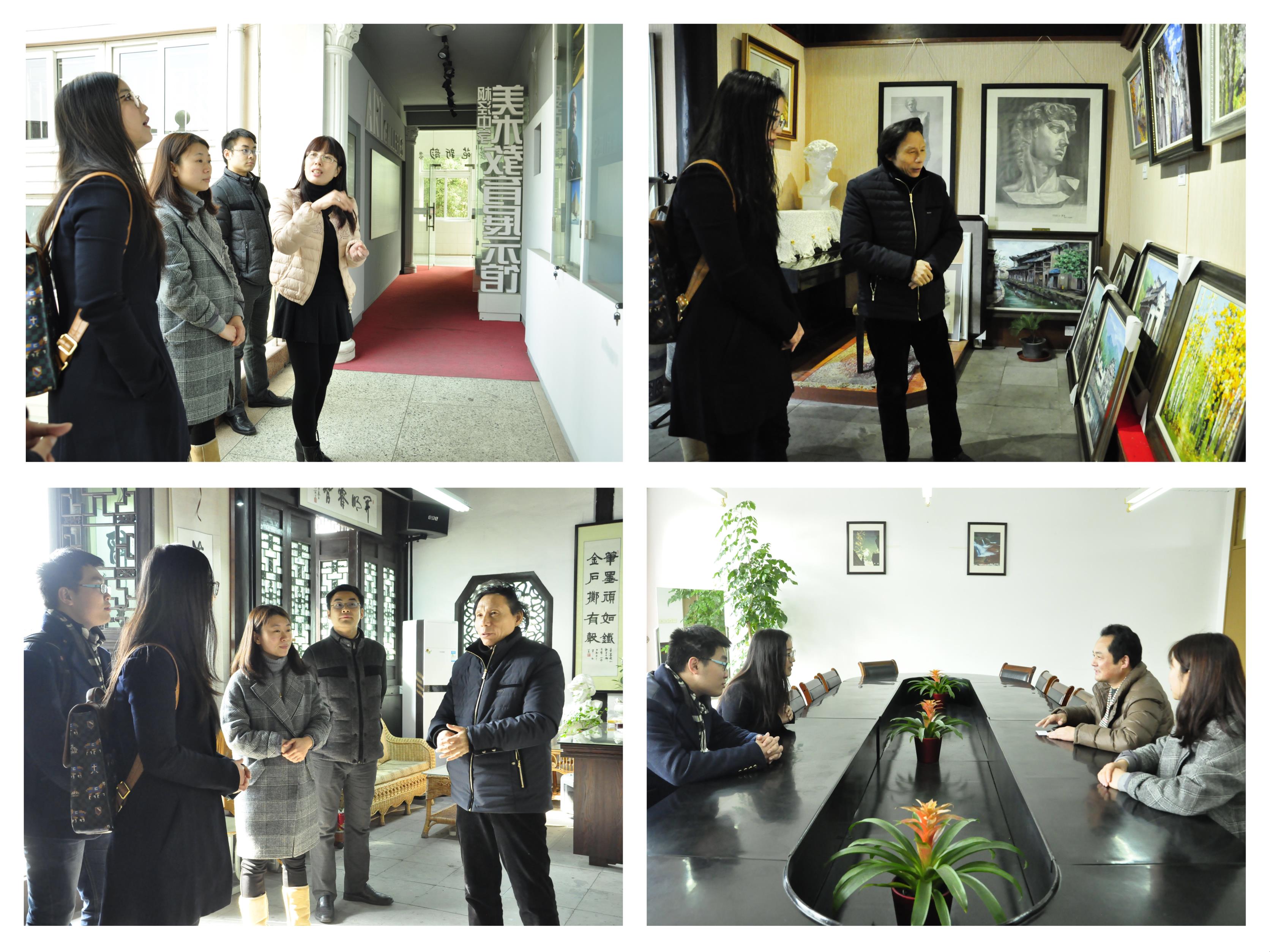 为更好了解枫泾中学的教学特色和办学文化,下午,在枫泾中学党总支书记丁金其老师等一行人的陪同下,我院团委副书记黄寂然老师先后参观了枫泾中学美术教育展示馆、科技工作室和体育馆等,更有幸前往了由我校杰出校友、枫泾中学的“枫泾一宝”顾世雄老师设立的艺术工作室,在顾老师的介绍下欣赏了极具枫泾古镇文化特色的艺术作品,同时枫泾中学的同学们也用他们的艺术创作彰显了别样的艺术天赋。