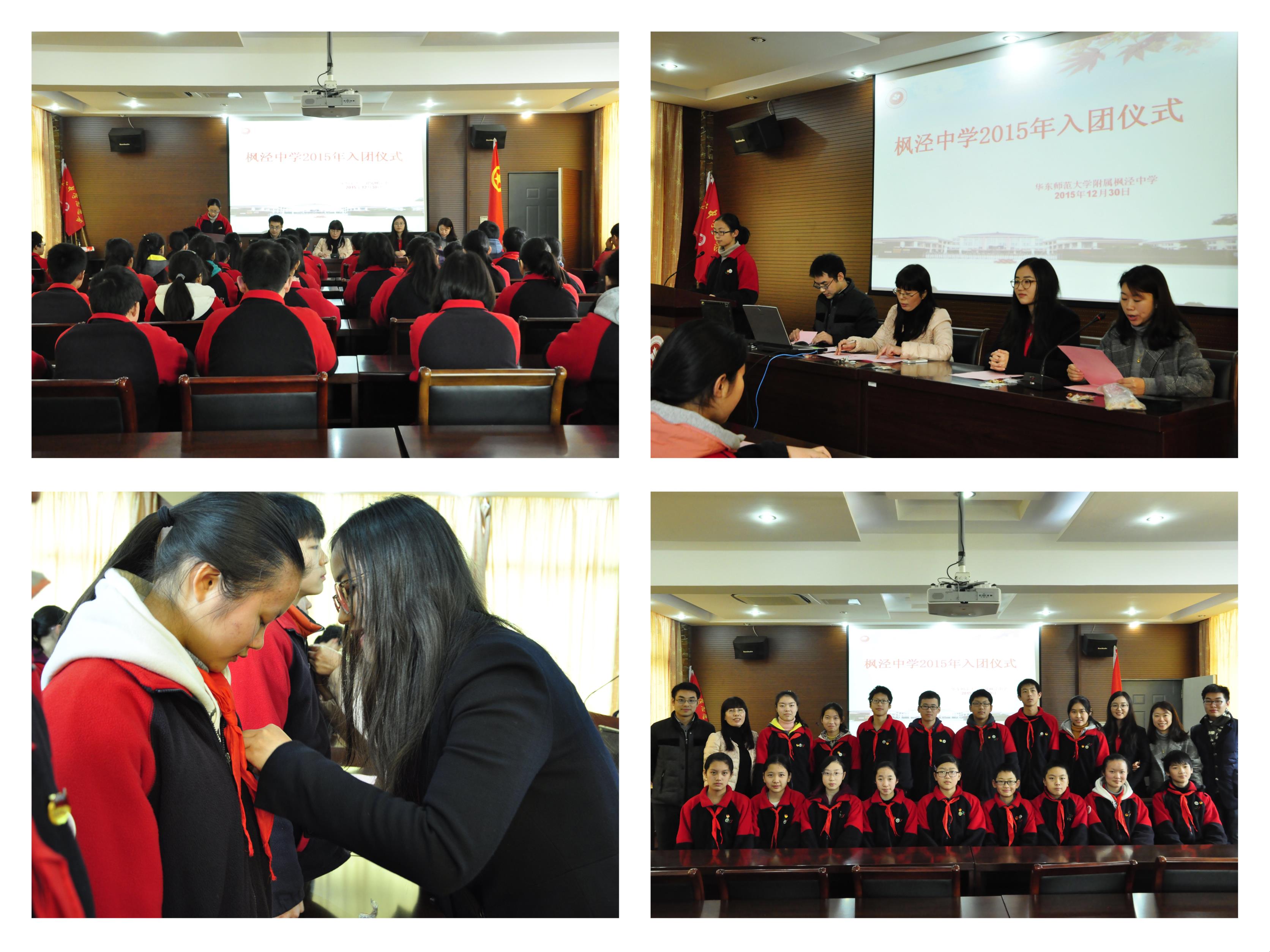 中午12点,枫泾中学2015年度新团员入团仪式正式拉开帷幕,我院团委副书记黄寂然老师和学生会副主席蔡漪潮作为嘉宾出席本次入团仪式。来自初二和初三年级的39名同学面对鲜艳的团旗庄严宣誓,出席入团仪式的领导和来宾为新入团的同学们佩戴上鲜艳的团徽并颁发团员证。仪式上,我院团委学生会副主席蔡漪潮同学作为大学生代表发言,他鼓励新团员们用实际行动完成自己的誓言,无愧于共青团员的光荣称号。
