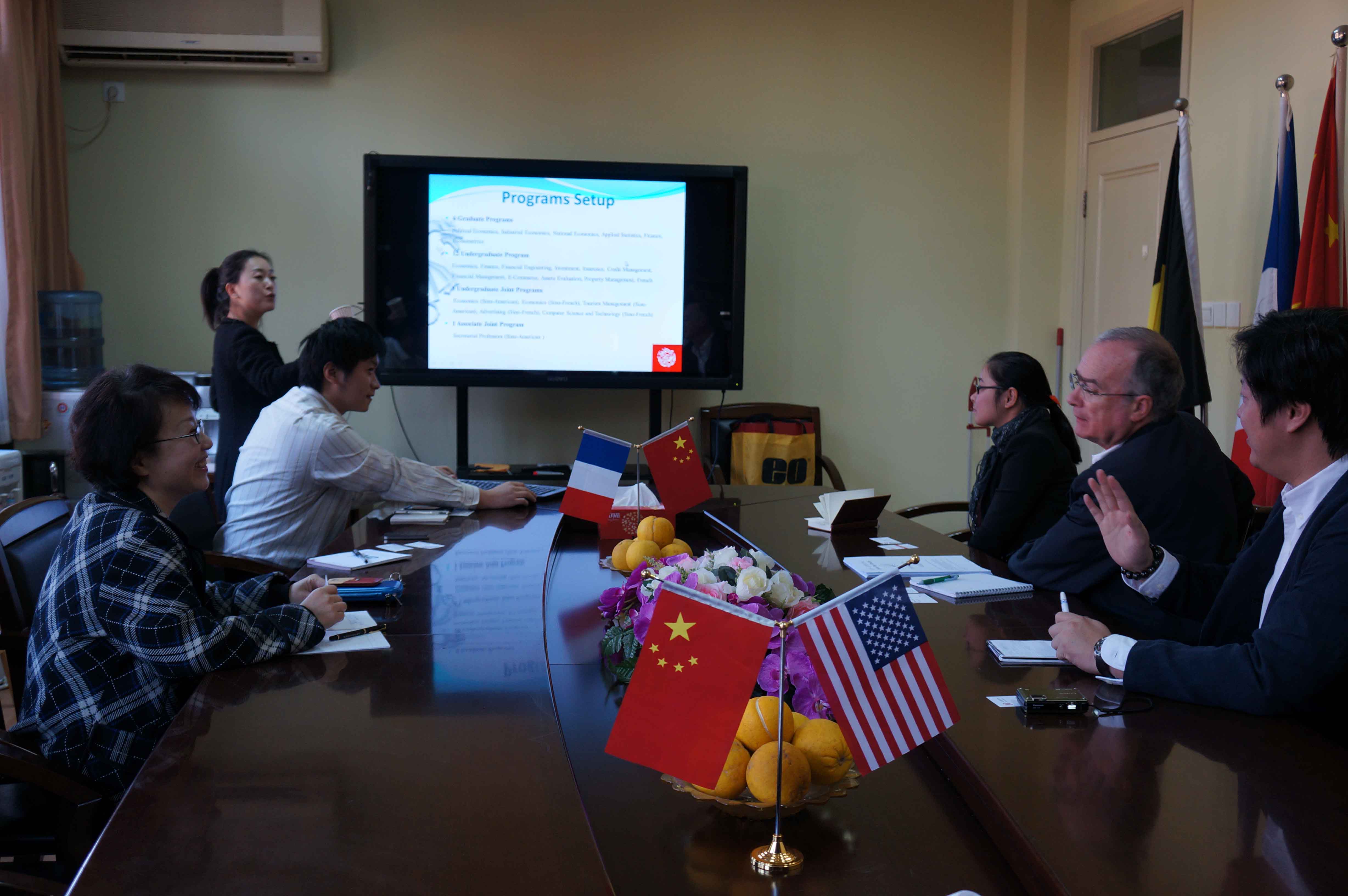 会谈前,学院国际事务部首先介绍了学院在国际合作方面的经验、成果,以及具体的国际合作内容,包括国际留学生项目的开展情况等。Serge GUARINO先生非常感谢国际事务部的介绍,对商学院国际交流项目的成果留下深刻印象。