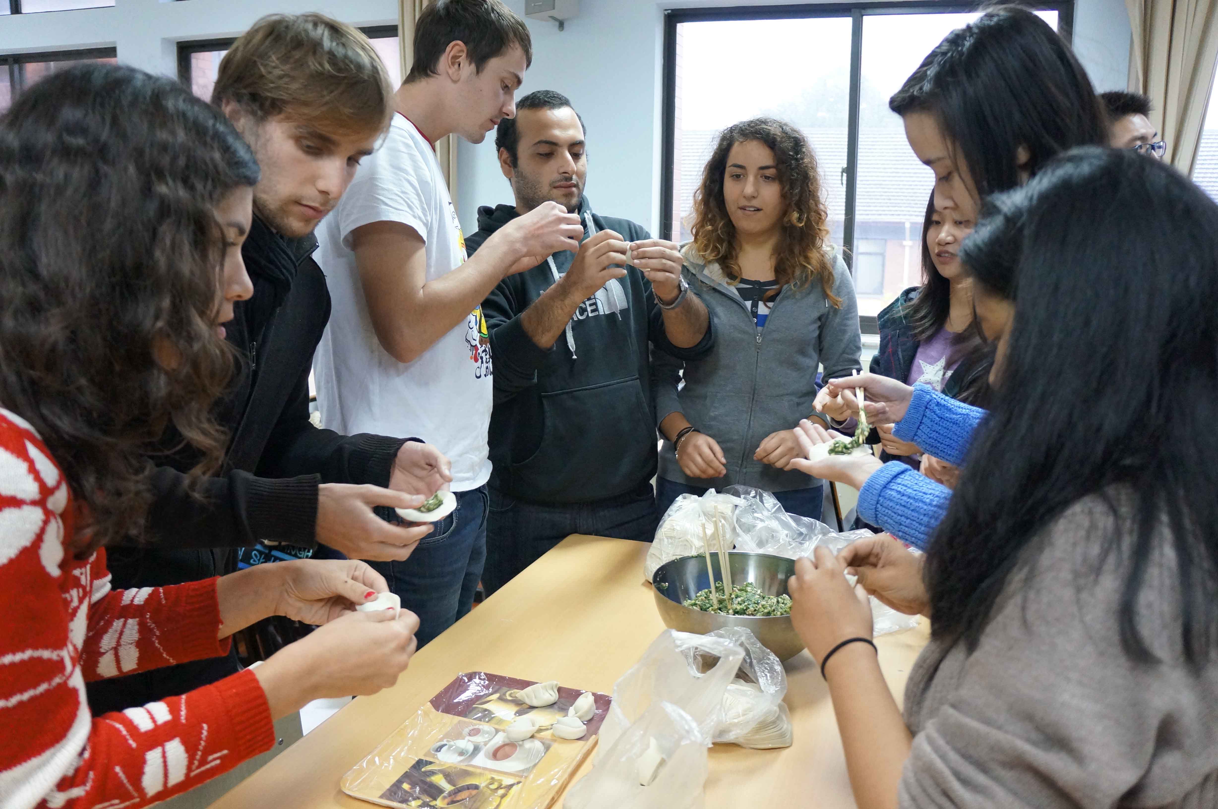 商学院留学生包饺子欢度感恩节