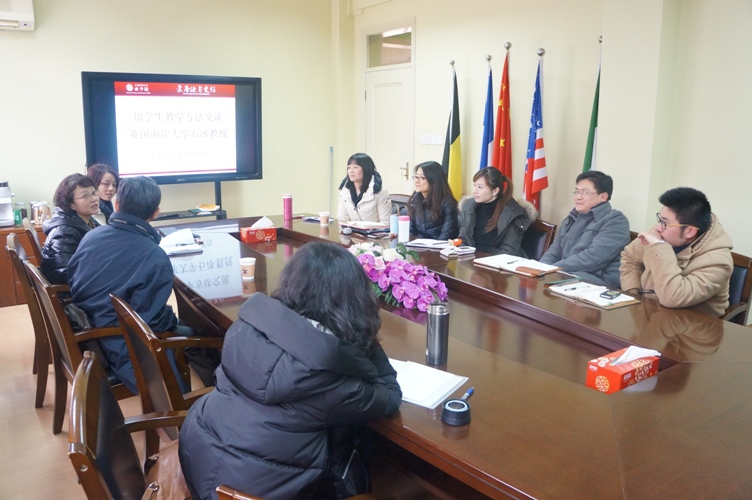 2月19日下午,英国南岸大学石冰教授与商学院留学生授课教师聚集一起,就留学生教学的特点和难点在方法上和技术上进行了交流。