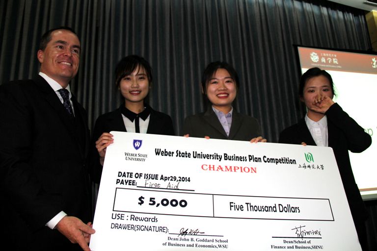 “身着正装,专业的PPT演示,面带微笑,用流利的英语介绍自己的商业计划并回答中外评委的提问”---4月29日,由我校和韦伯州立大学合作举办的第二届中美商业计划大赛决赛在会议中心2号报告厅举行,我校商学院的学生们展示了他们精心设计的创业计划。最终来自“First Aid”项目小组的4位同学凭借对上海就医难题的解决方案获得一等奖,荣获5000美元的奖金。“Mr. Koali”小组和“Trand”小组则获得第二、三等奖,分别获得3000美元和2000美元的奖金。