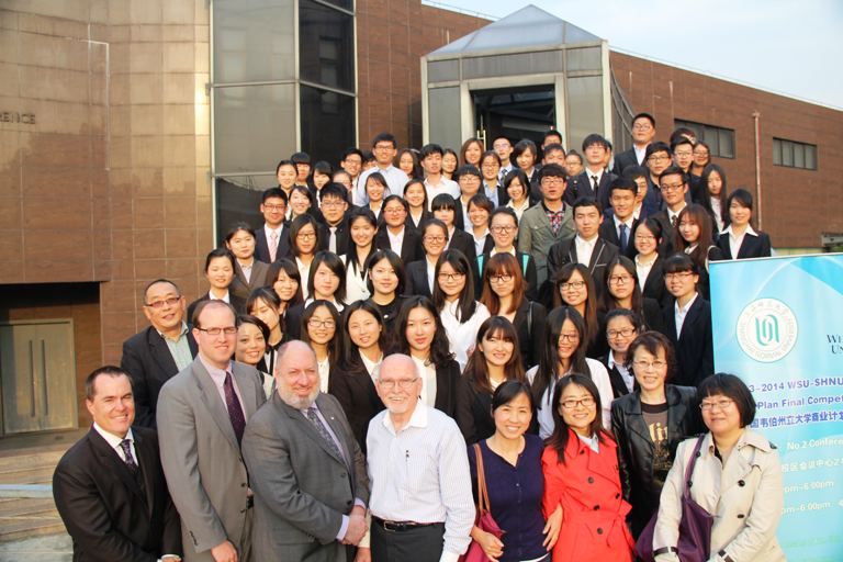 上海师范大学商学院校长助理、商学院院长茆训诚教授在致辞中介绍了我校与韦伯州立大学16年的合作历程,希望通过举办商业计划大赛这样的形式鼓励同学们抓住市场机遇,开拓创业思维,促进产学研的紧密结合。韦伯州立大学副校长Alex Lawrence,韦伯州立大学商学院院长Jeff Steagal 和教师Dave Noach担任美方评委,中方评委则由茆训诚、商学院保险专业负责人杨宝华博士以及财务管理专业负责人黄虹博士等担任。