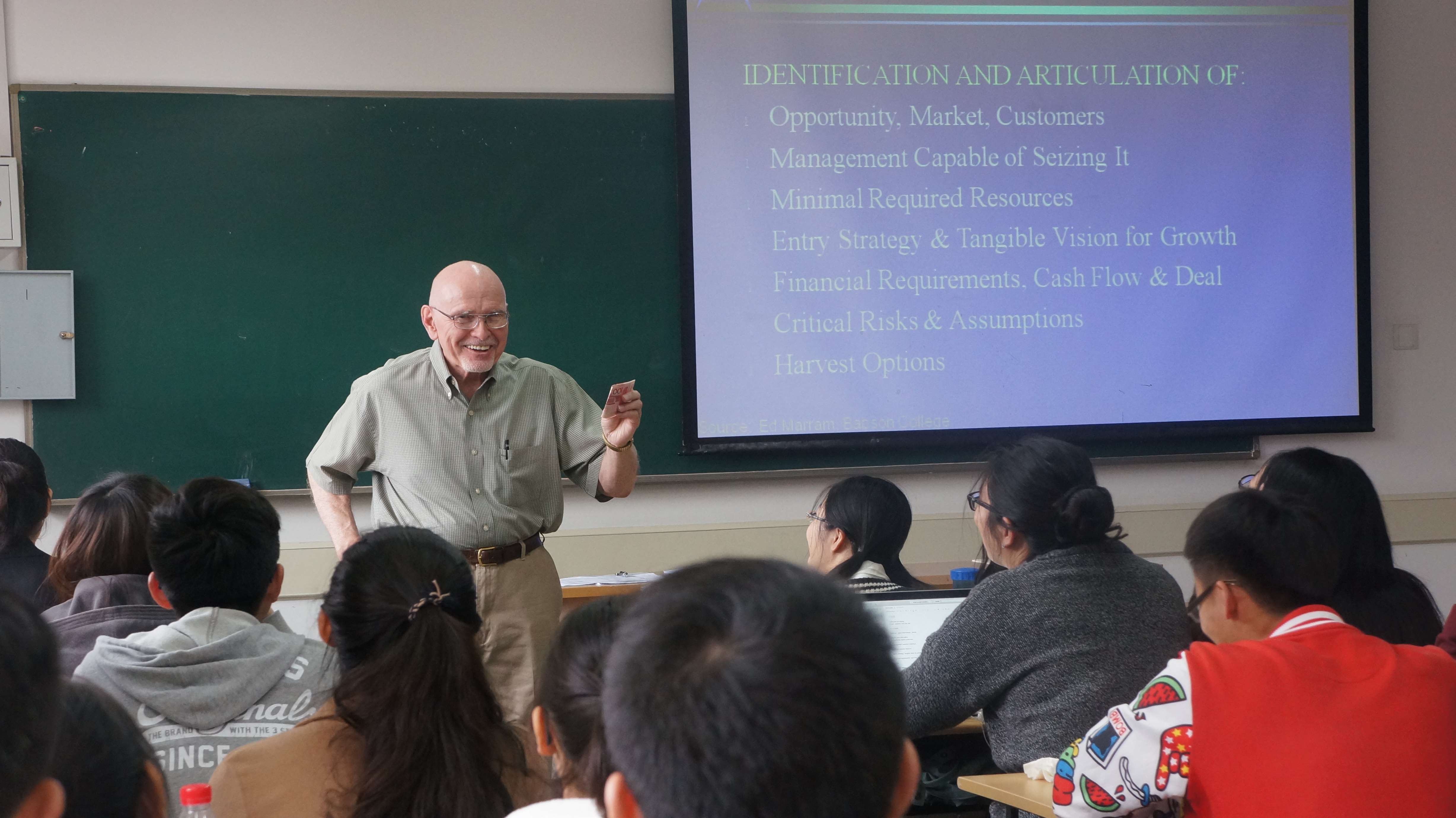 2016年4月25日下午,犹他山谷大学的J.Kent Millington荣誉教授为2016韦伯商业计划大赛入围决赛的17个小组共75人进行为期一周的集中培训。