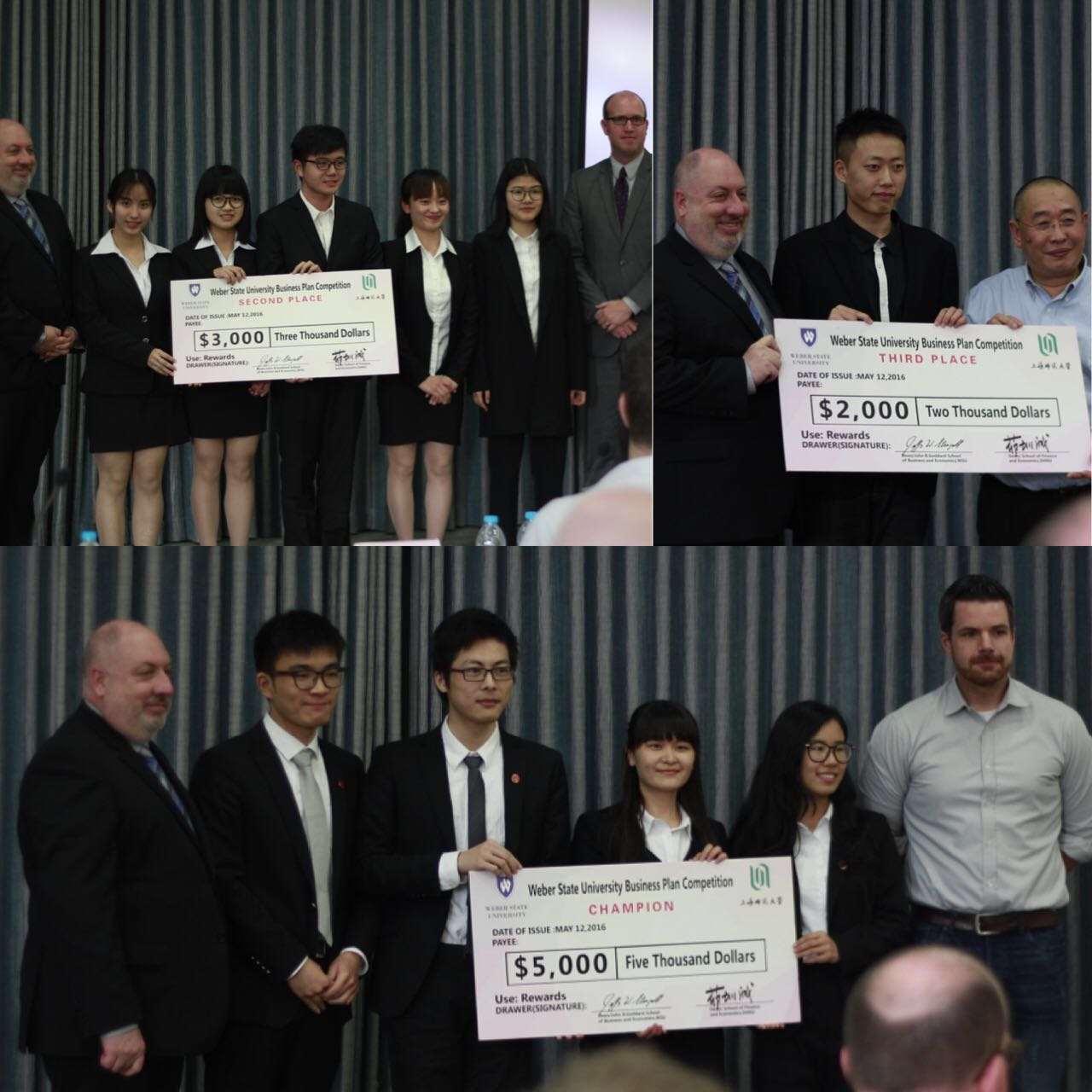 最终“Sanchan”小组的四位同学以“Mobile Storage Application”的创业设想夺得桂冠,并赢得了5000美元的奖金,“Pu Ting”小组和“U-Bike”小组分别获得比赛第二、第三名,获得奖金3000美元和2000美元。来自美国韦伯州立大学、犹他山谷大学、法国马恩河谷大学、法国克莱蒙一大、加拿大魁北克大学蒙特利尔分校的师生们也观摩了整个决赛过程。为每一位努力的学生喝彩欢呼。