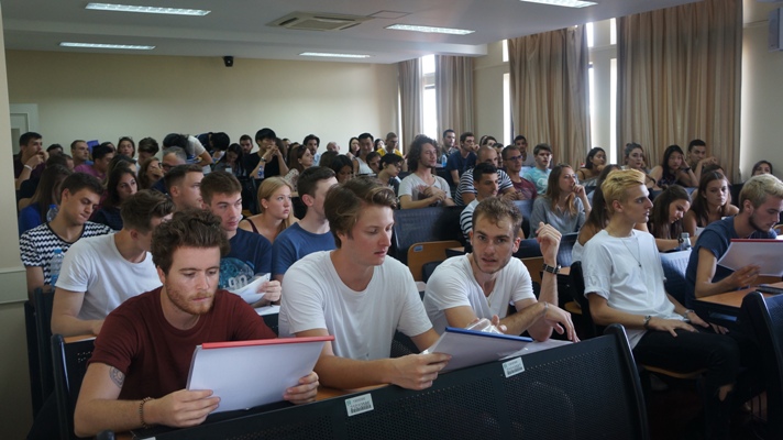 2016年9月13日上午,上海师范大学商学院迎来了99位留学生,他们分别来自法国、意大利、波兰、德国、比利时和摩洛哥。赵红军副院长热情地致欢迎词,欢迎来自我院合作院校的同学们来商学院学习中国的经济和法律。赵教授告诉学生,中国的文化和国外是不同的,大家来到中国要尊重中国的文化、遵守中国的法律,认真学习,体验生活,希望每一位学生在中国的学习和生活都快乐、顺利。