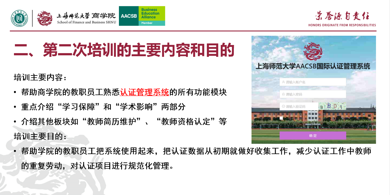 2022年5月25日,上海师范大学商学院与上海毕毕(BBBLACKBOARD)技术有限公司通过腾讯会议平台举办了以AACSB学习过程保证(AoL)为主题的第二期培训。各系科主任、专业负责人、学位项目负责人、相关授课老师以及行政人员约80人共同参加本次会议,会议由商学院AACSB认证中心主任唐丽老师主持。
