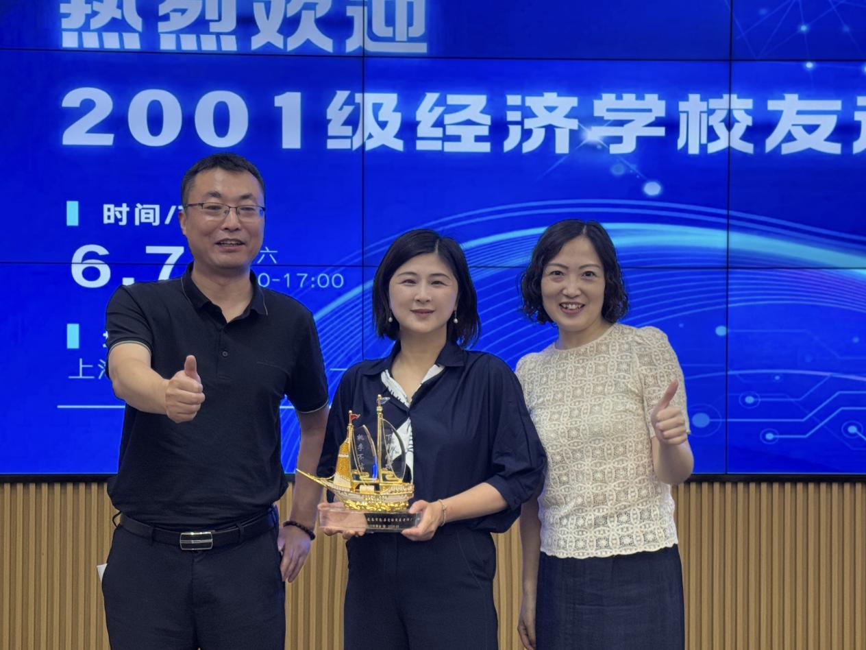 在活动现场,2001级经济学专业的辅导员周芸老师对校友们的返校表示了热烈的欢迎,并亲自为每一位到场的校友颁发了学籍卡和精心准备的纪念品,以表达学院对他们的深厚情感。周芸老师不仅历数了校友当年的精彩瞬间,还详细介绍了学院近年来在学科建设、人才培养以及社会服务等多个领域所取得的显著成就。她特别强调,校友是学院最宝贵的财富,学院的每一步发展都离不开校友们的支持与帮助。她表达了对未来能够进一步加强与校友之间的联动合作的殷切期望,希望校友们能够继续为学院的发展贡献自己的力量。