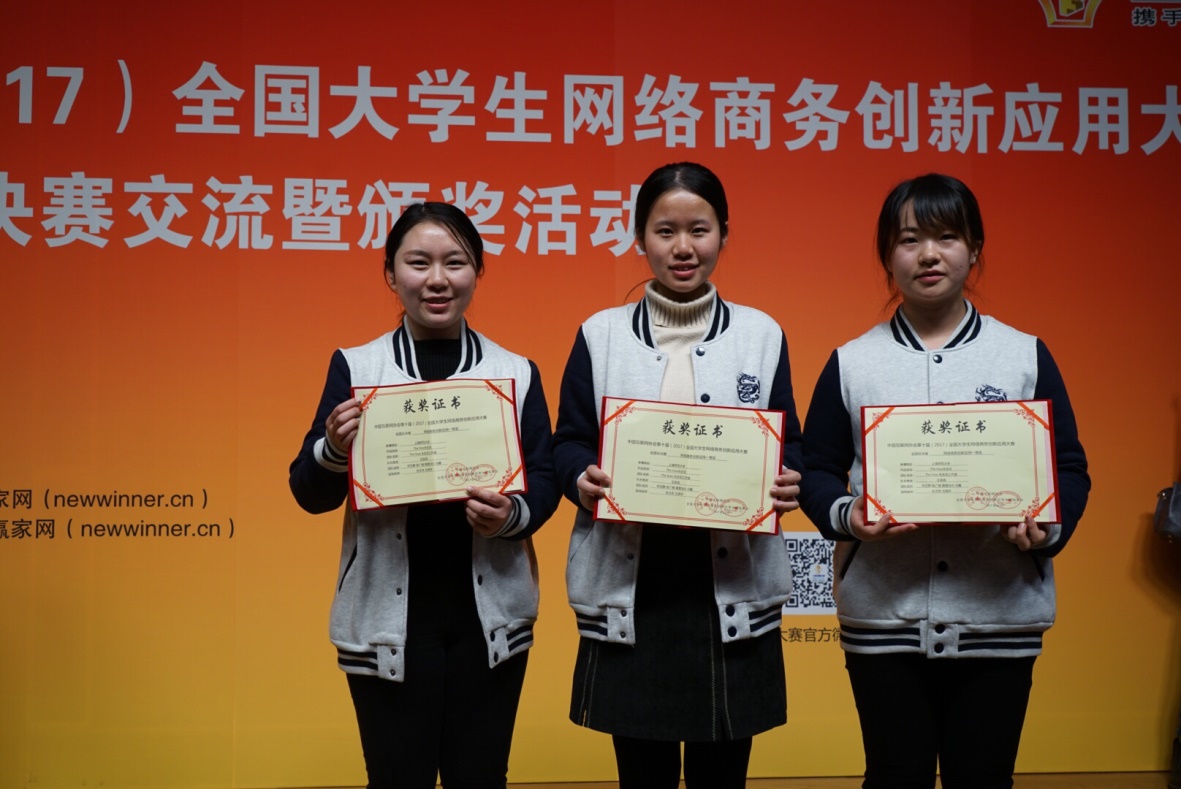 12月3日,由工业和信息化部指导、教育部支持、中国互联网协会主办的第十届全国大学生网络商务创新应用大赛全国总决赛颁奖典礼在北京联合大学隆重举行。由我校商学院15级学子电子商务专业王良尧(队长)、财务管理专业柯玉静、张广楠、中法计算机专业冯鑫及人文学院15级古典文献专业黄蓉诗卉组成的The Vow永生花团队,在此次大赛中荣获一等奖。团队指导老师商学院杜文杰、文燕平老师被评为“优秀指导老师”。