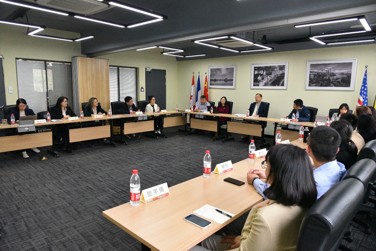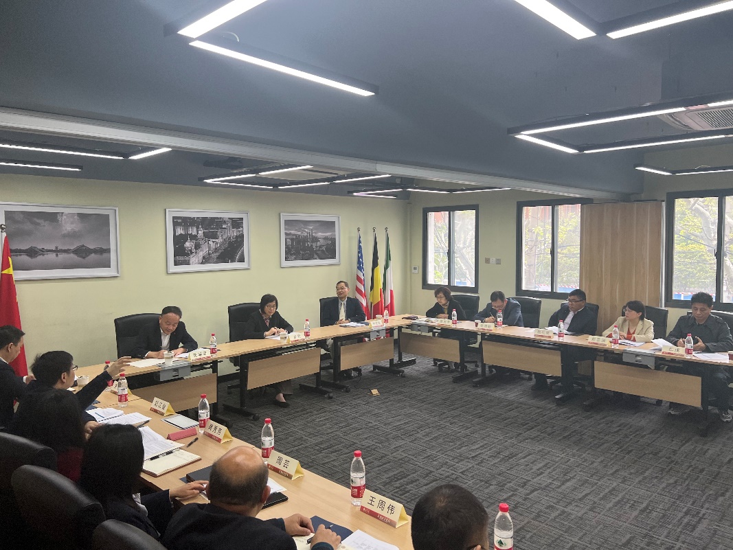 4月14日上午9:30,林君维院长与上海师范大学商学院校长袁雯、副校长蒋明军、教务处处长高湘萍、发展规划处处长杨海峰、国际交流处处长武成、财务处处长顾桂焦、研究生院副院长刘兰英、资产与实验室管理处副处长吴波,以及商学院党政领导班子成员、AACSB认证相关工作教职员工于商学院六教D座203会议室进行了第一场座谈会。