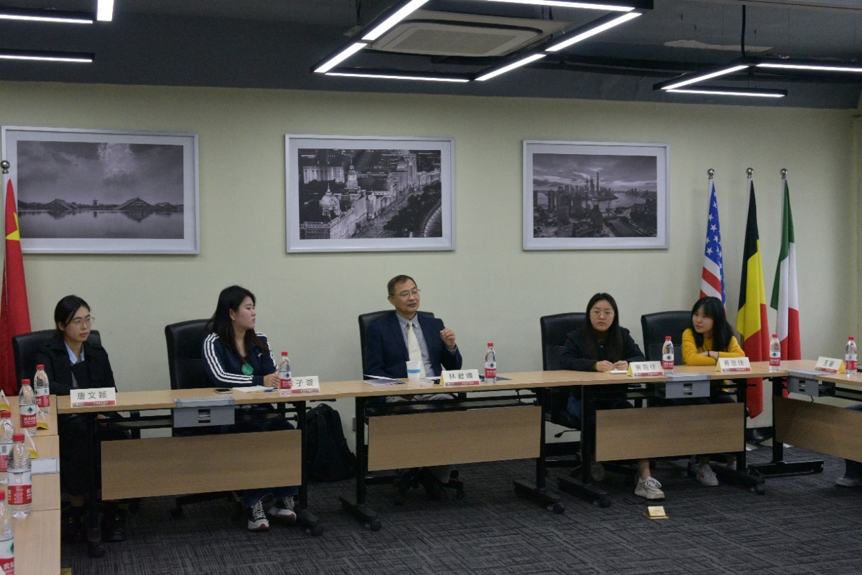 (图七至图十一:林君维教授与商学院学生代表英文场交流)